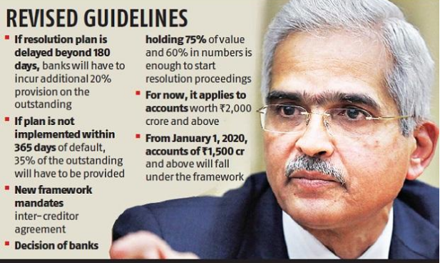 - oIn the changed rules lenders have been given 30 days (in place of one day earlier) to decide upon a strategy. If RP is not implemented in 180 days banks will have to pay penalty rather than mandatory IBC referral.