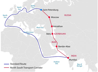 - The route primarily involves moving freight from India, Iran, Azerbaijan and Russia via ship, rail and road.