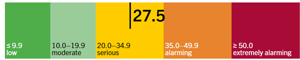 - With a score of 27.5, India has a level of hunger that is ‘serious’.