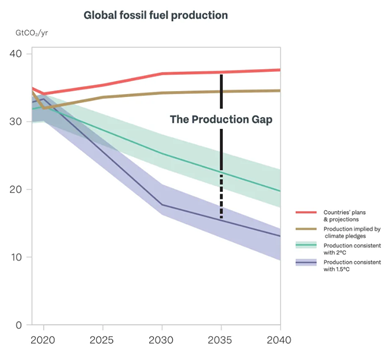 - The Production Gap Report — first launched in 2019 — tracks the discrepancy between governments’ planned fossil fuel production and global production levels consistent with limiting warming to 1.5°C or 2°C.