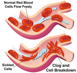 Hemoglobinopathy: It is a group of genetically inherited disorders in which the oxygen-carrying protein in the blood- haemoglobin is shaped differently (mostly elongated like a sickle) instead of normal, round or disc shape.