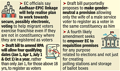 - It will amend the representation of people act and allow four qualifying dates in a year rather than one, for those who are above 18 years, to register as a voter.