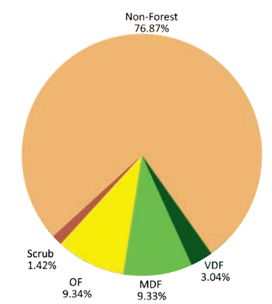 - The total forest and tree cover of the country is 80.9 million hectare which is 24.62 per cent of the geographical area of the country.