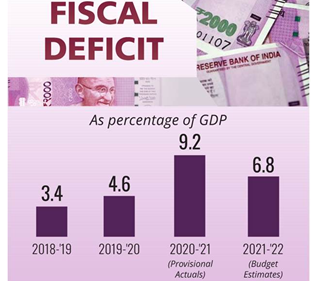- It adds that on the account of a sustained revenue collection and a targeted expenditure policy by the Government of India, the fiscal deficit for April-November 2021 has been contained at 46.2 per cent of Budget Estimates (BE) which is nearly one third of the proportion reached during the same period of the previous two years (135.1% of BE in April-November 2020 and 114.8% of BE in April-November 2019).