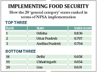 Overall, Odisha, Uttar Pradesh and Andhra Pradesh scored the highest and secured the top three positions in the Index. The states performed very well on all the parameters and indicators governing the implementation of NFSA through TPDS (targeted public distribution system).