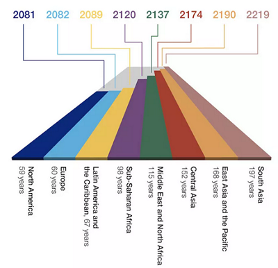 - At the current rate of progress, it will take 132 years to reach full parity.