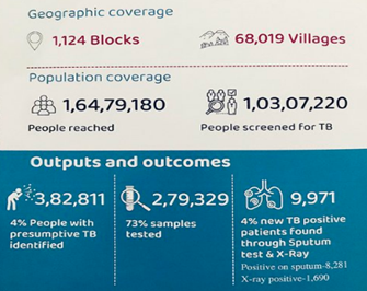- Under the initiative, door-to-door screening for TB was undertaken covering 68,019 villages.
