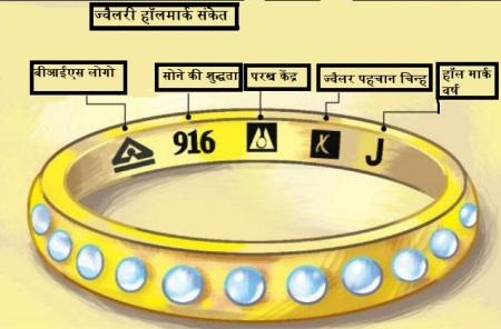 सोने के आभूषणों के लिए BIS हॉलमार्क में पाँच घटक होते हैं-