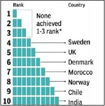 - हालांकि भारत पिछले साल नौवें स्थान से एक स्थान नीचे खिसक गया है, लेकिन जलवायु संरक्षण की दिशा में लगातार प्रयास से वर्ष 2014 में 31वीं रैंकिंग से वर्तमान में सुधार हुआ है।
