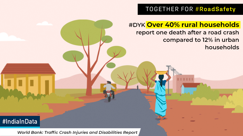 - ग्रामीण गरीब परिवारों के बीच सड़क दुर्घटना में मृत्यु 44% है। जबकि, शहरी गरीब परिवारों के बीच सड़क दुर्घटना में मृत्यु 11.6% है।