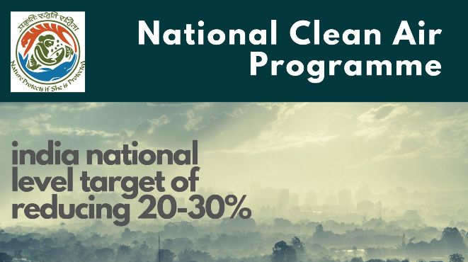 - राष्ट्रीय स्वच्छ वायु कार्यक्रम 2024 तक (आधार वर्ष 2017 के साथ) पार्टिकुलेट मैटर सांद्रता में 20% से 30% तक कटौती के लक्ष्य के साथ समग्र रूप में देश भर में वायु प्रदूषण की समस्या से पार पाने के लिए एक दीर्घकालिक, समयबद्ध, राष्ट्रीय स्तर की रणनीति है।