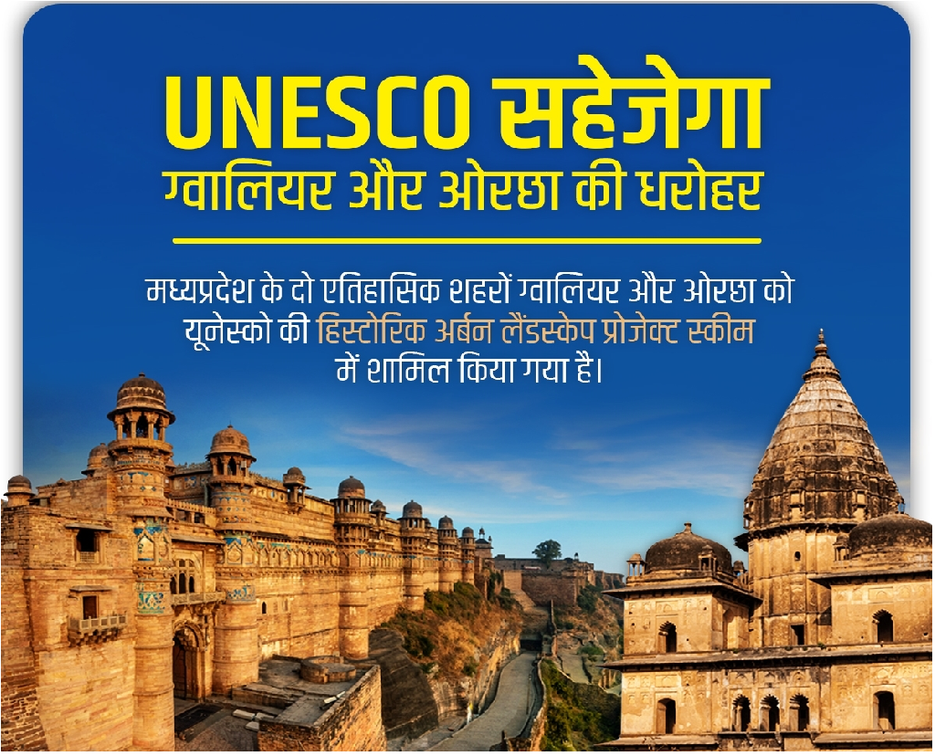 मध्य प्रदेश में, ग्वालियर और ओरछा शहरों को यूनेस्को द्वारा 'ऐतिहासिक शहरी परिदृश्य परियोजना' (Historic Urban Landscape Project) के तहत चुना गया है। मुख्यमंत्री शिवराज सिंह चौहान ने 20 जुलाई, 2021 को राज्य के ग्वालियर और ओरछा शहरों के लिए इस परियोजना का वस्तुतः शुभारंभ किया।