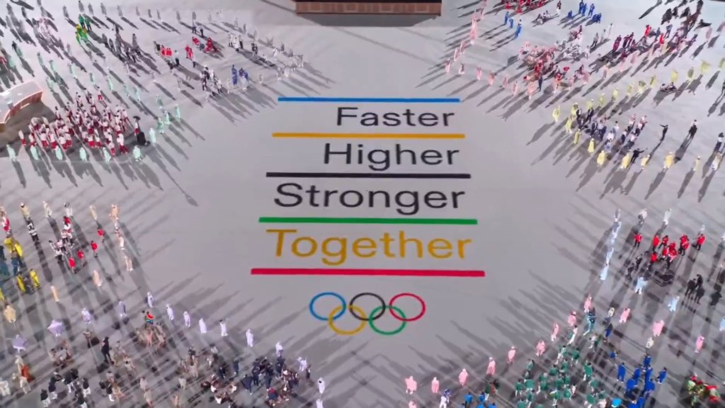 20 जुलाई, 2021 को ओलंपिक के आदर्श वाक्य (motto) को “Faster, Higher, Stronger” से बदलकर “Faster, Higher, Stronger – Together” कर दिया गया है।