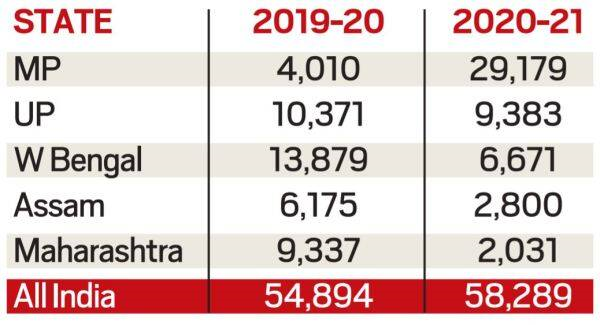 श्रम और रोजगार मंत्री द्वारा 2 अगस्त, 2021 को लोक सभा में पेश किए गए आंकड़ों के अनुसार, 2020-21 में, राष्ट्रीय बाल श्रम परियोजना के तहत पूरे भारत में 58,000 से अधिक बच्चों को बाल श्रम से बचाया गया, उनका पुनर्वास किया गया और उन्हें मुख्यधारा में लाया गया।