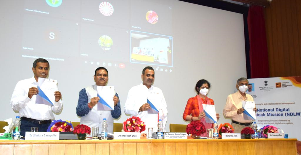 केंद्रीय मत्स्य पालन, पशुपालन और डेयरी राज्य मंत्री डॉ. संजीव बालियान ने 7 अक्टूबर, 2021 को आणंद स्थित 'राष्ट्रीय डेयरी डेवलपमेंट बोर्ड' (एनडीडीबी) में 'राष्ट्रीय डिजिटल पशुधन मिशन ब्लूप्रिंट' का अनावरण किया।