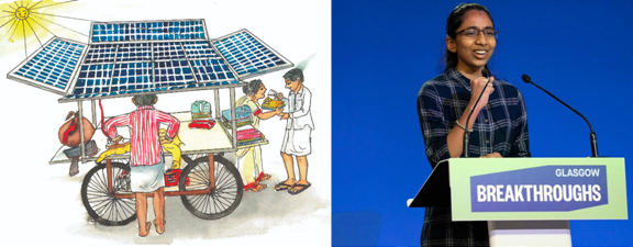 ‘सोलर आयरनिंग कार्ट’ (Solar Ironing Cart) के विचार के लिए ‘अर्थ डे नेटवर्क राइजिंग स्टार 2021 (यूएसए)’ से सम्मानित तमिलनाडु की 15 वर्षीय बालिका विनीशा उमाशंकर ने नवंबर 2021 में संपन्न कॉप-26 सम्मेलन के दौरान दुनिया को स्वच्छ ऊर्जा की ओर बढ़ने का आह्वान किया है।