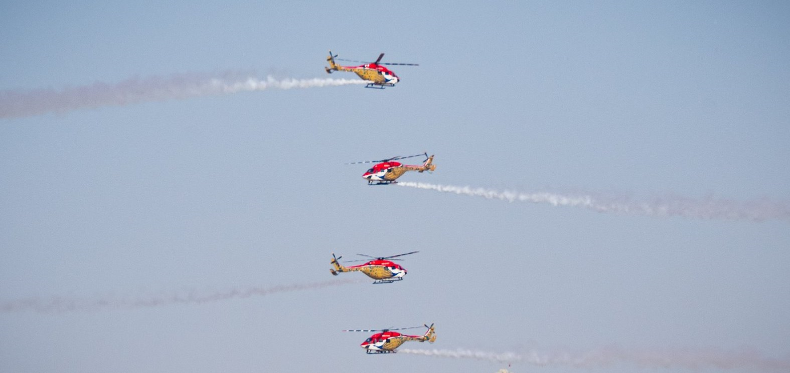 - इन टीमों ने दुनिया की कुछ बेहतरीन एरोबेटिक्स टीमों के साथ प्रदर्शन किया, जिनमें सऊदी हॉक्स (Saudi Hawks), रशियन नाइट्स (Russian Knights) और यूएई के अल फुरसान (Al Fursan) शामिल थे।