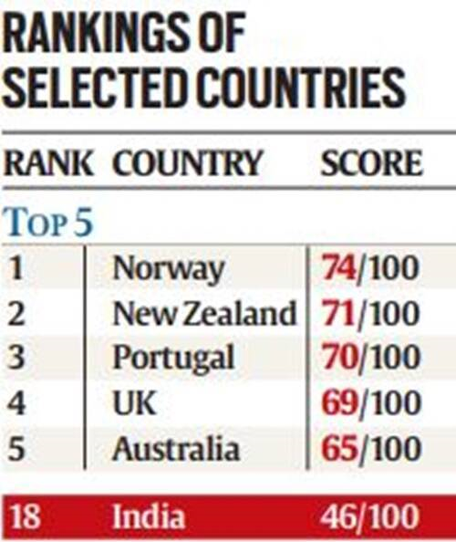 - पांच सबसे कम रैंकिंग वाले देश ब्राजील, युगांडा, इंडोनेशिया, केन्या और मैक्सिको हैं।