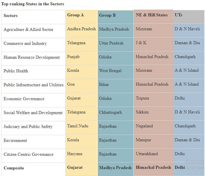 - सुशासन सूचकांक 2019 संकेतकों की तुलना में गुजरात ने 12.3% की वृद्धि दर्ज की और गोवा ने24.7% की वृद्धि दर्ज की है।