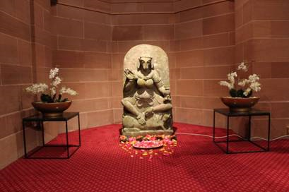 - एक बकरी के सिर वाली योगिनी की यह मूर्ति मूल रूप से बलुआ पत्थर में ‘पत्थर के देवताओं’ (stone deities) के एक समूह से संबंधित है।