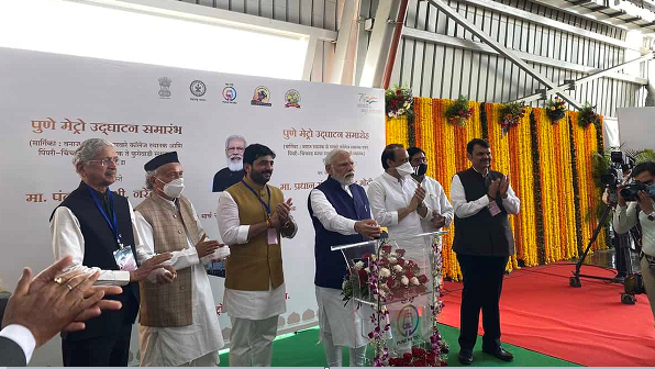 प्रधानमंत्री नरेंद्र मोदी ने 6 मार्च, 2022 को ‘पुणे मेट्रो रेल परियोजना’ का उद्घाटन किया।