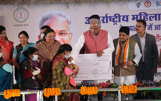 - मुख्यमंत्री भूपेश बघेल ने राजधानी रायपुर के बीटीआई ग्राउंड में आयोजित राज्य स्तरीय महिला सम्मेलन में सुरक्षित मातृत्व के लिए पांच महिला लाभार्थियों को 5-5 हजार रूपए के चेक प्रदान किए।