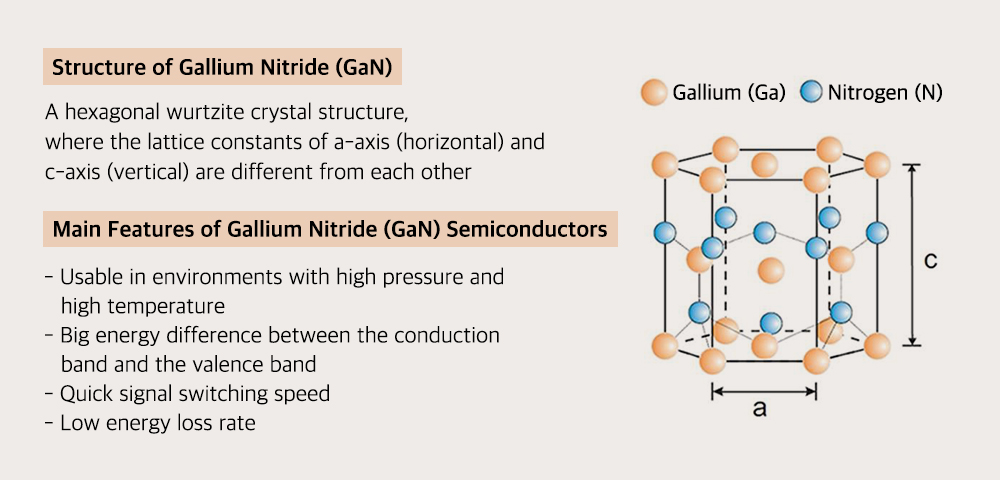 - गैलियम नाइट्राइड (GaN): यह एक बहुत कठोर, यांत्रिक रूप से स्थिर चौड़ा बैंडगैप सेमीकंडक्टर है।