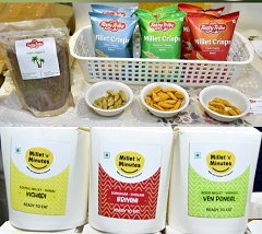 कृषि और प्रसंस्कृत खाद्य उत्पाद निर्यात विकास प्राधिकरण (APEDA) ने 26 से 30 अप्रैल, 2022 तक प्रगति मैदान, नई दिल्ली में आयोजित 36वें आहार (36th edition of AAHAR) मेले में सभी आयु वर्ग के लिए 5 रुपये से 15 रुपये तक की किफायती दरों पर विभिन्न प्रकार के ग्लूटेन-मुक्त मिलेट (मोटे अनाज) उत्पाद (Gluten-free Millet products) लॉन्च किए।