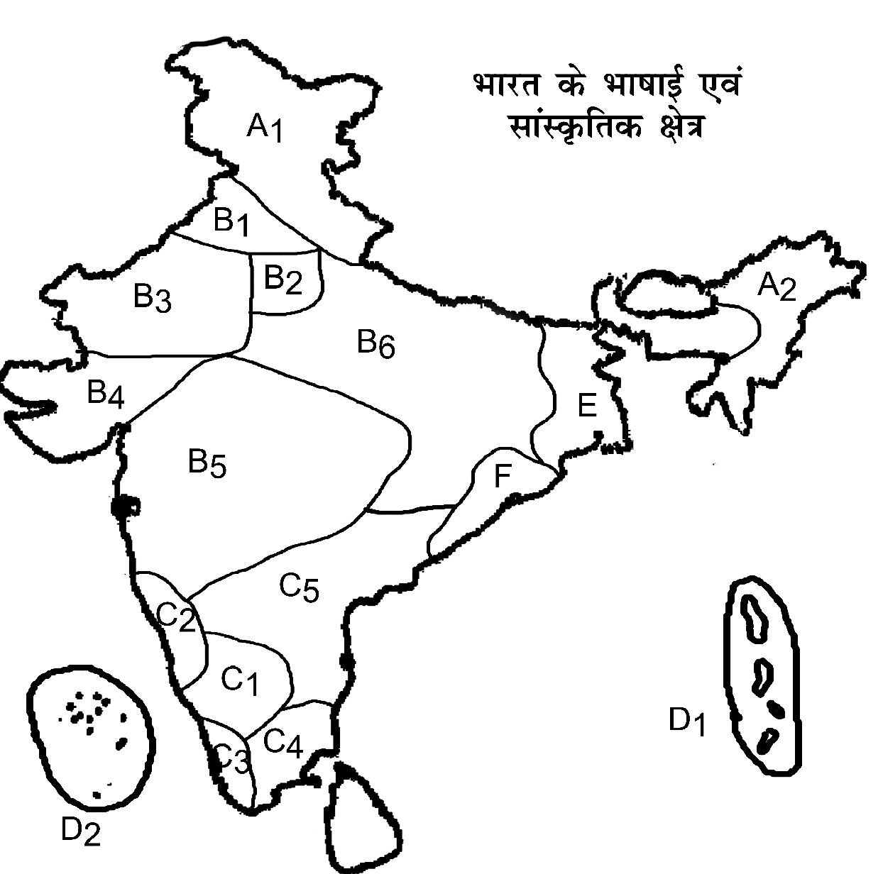 B. हिन्दुस्तानी क्षेत्र - B1 पंजाबी क्षेत्र, B2 हरियाणवी क्षेत्र, B3 राजस्थानी क्षेत्र, B4 गुजराती क्षेत्र, B5 मराठी ....