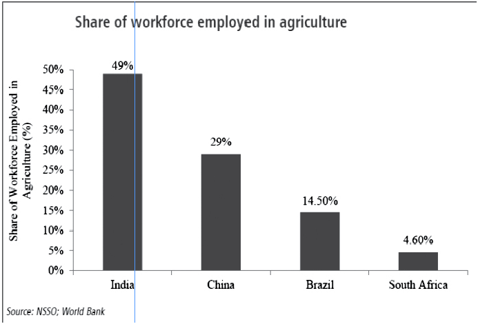 - Of India’s total workforce of about 52 crore, agriculture employed nearly 49 per cent while contributing only 15 per cent of the ....