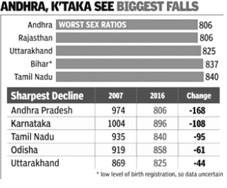 Abysmal sex ratios have generally been associated with states like Haryana and Punjab. However, the data for 2007 to 2016 on sex ratio at birth, an indication of which way the sex ratio will move in the coming years, shows that southern states barring Kerala ....