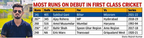 बिहार के 22 वर्षीय दाएं हाथ के बल्लेबाज शाकिबुल गनी ने रणजी ट्रॉफी 2021-22 के दूसरे दिन 18 फरवरी, 2022 को प्रथम श्रेणी पदार्पण मैच में तिहरा शतक लगाने वाले विश्व के पहले खिलाड़ी बनकर इतिहास रच दिया। उन्होंने विश्व रिकॉर्ड कायम किया है।