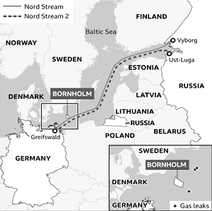 - नॉर्ड स्ट्रीम पाइपलाइन्स में रिसाव बाल्टिक गैस पाइपलाइन के औपचारिक लांच से ठीक पहले हुआ है।