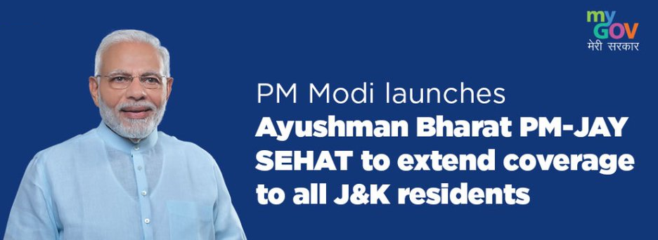 - प्रधानमंत्री नरेन्द्र मोदी ने 26 दिसंबर, 2020 को वीडियो कॉन्फ्रेंसिंग के माध्यम से केंद्रशासित प्रदेश जम्मू-कश्मीर में आयुष्मान भारत पीएम-जेएवाई सेहत (Ayushman Bharat PM-JAY SEHAT) का शुभारंभ किया; इस योजना में जम्मू एवं कश्मीर के सभी निवासियों को शामिल किया जाएगा।