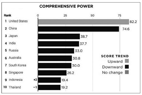 महत्वपूर्ण तथ्यः इसे व्यापक शक्ति के लिए हिंद-प्रशांत में 26 देशों और क्षेत्रों में चौथा स्थान दिया गया है।