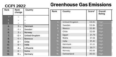 जर्मनवाच, न्यू क्लाइमेट इंस्टीटड्ढूट और क्लाइमेट एक्शन नेटवर्क द्वारा संकलित जलवायु परिवर्तन प्रदर्शन सूचकांक 2022 (Climate Change Performance Index: CCPI 2022) का 17वां संस्करण 9 नवंबर, 2021 को जारी किया गया।