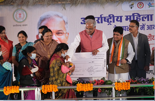 - मुख्यमंत्री भूपेश बघेल ने राजधानी रायपुर के बीटीआई ग्राउंड में आयोजित राज्य स्तरीय महिला सम्मेलन में सुरक्षित मातृत्व के लिए पांच महिला लाभार्थियों को 5-5 हजार रूपए के चेक प्रदान किए।