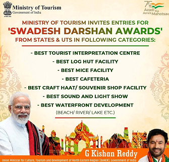 राज्य सरकारों, केंद्र-शासित प्रदेश प्रशासनों और विभिन्न कार्यान्वयन एजेंसियों द्वारा किए गए प्रयासों को मान्यता देने के लिए, पर्यटन मंत्रालय ने 3 मार्च, 2022 को सात अलग-अलग श्रेणियों में 'स्वदेश दर्शन पुरस्कारों' की शुरुआत की।