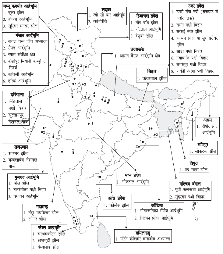 - 24 भारत के रामसर स्थल और विश्व के प्रमुख घास मैदान का मानचित्र