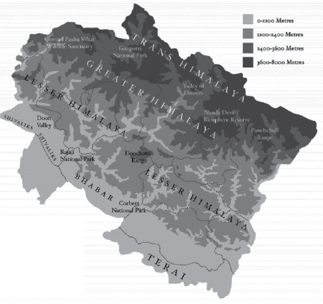 - उत्तराखंड के भूगोल को निम्नलिखित भागों में बांटा जा सकता हैः
