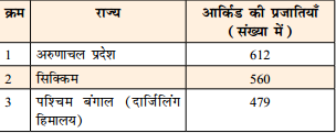 - भारत के 10 जैव-भौगोलिक क्षेत्रें में से आर्किड की प्रचुरता वाले क्षेत्र घटते हुए क्रम में निम्नलिखित हैं-