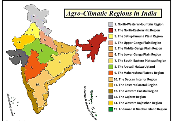 - Finally, in 1988, the Planning Commission divided India into 15 agro-climatic regions with 73 sub-regions.