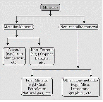 - Metallic minerals can be further divided into ferrous (have iron content) and non-ferrous metallic minerals (do not contain iron are).