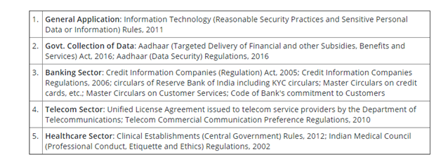 - General Application: Information Technology (Reasonable Security) Practices and Sensitive Personal Data of Information rules, 2011