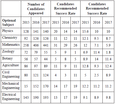 - But if we analyse carefully from the table, most of the science/engineering optional have a double digit success rate, and in true sense four out of one selections. Though they may require little more time to master the desired level of excellence, but effort is best rewarded.