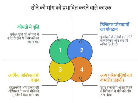 - यह वृद्धि वैश्विक सोने की मांग में हुई 25% की वृद्धि के अनुरूप है।