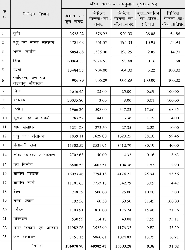 विभाग-वार हरित बजट अनुमान का विवरण (2025-26)