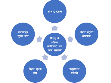 स्वतंत्रता संघर्ष के दौरान बिहार में सक्रिय क्रांतिकारी एवं छात्र आंदोलन से सम्बद्ध संगठनों की चर्चा कीजिये।