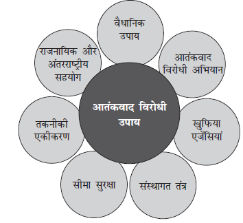 - भारत के आतंकवाद विरोधी उपाय बहुआयामी हैं, जिनमें कानूनी, परिचालन संबंधी, खुफिया, राजनयिक और सामाजिक-आर्थिक रणनीतियाँ शामिल हैं।
