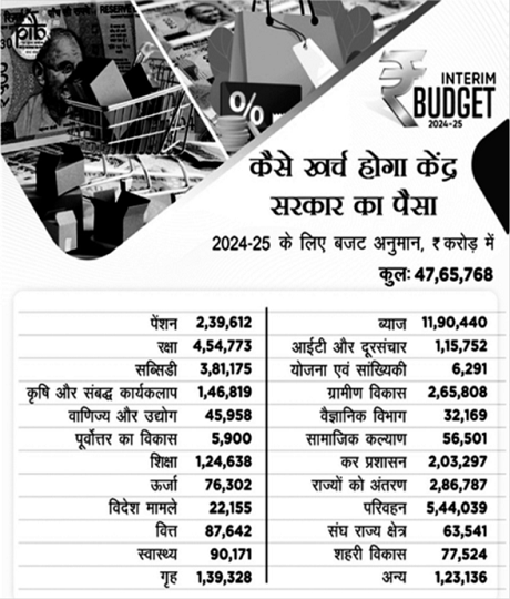 केंद्र सरकार के व्यय के प्रमुख क्षेत्र